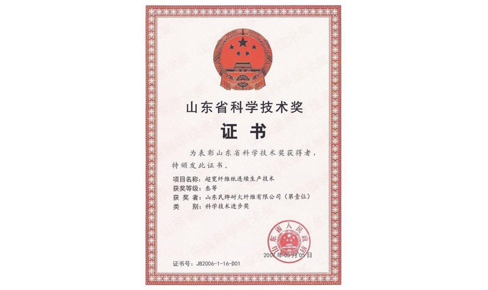 山東省科學(xué)技術(shù)獎(jiǎng)證書